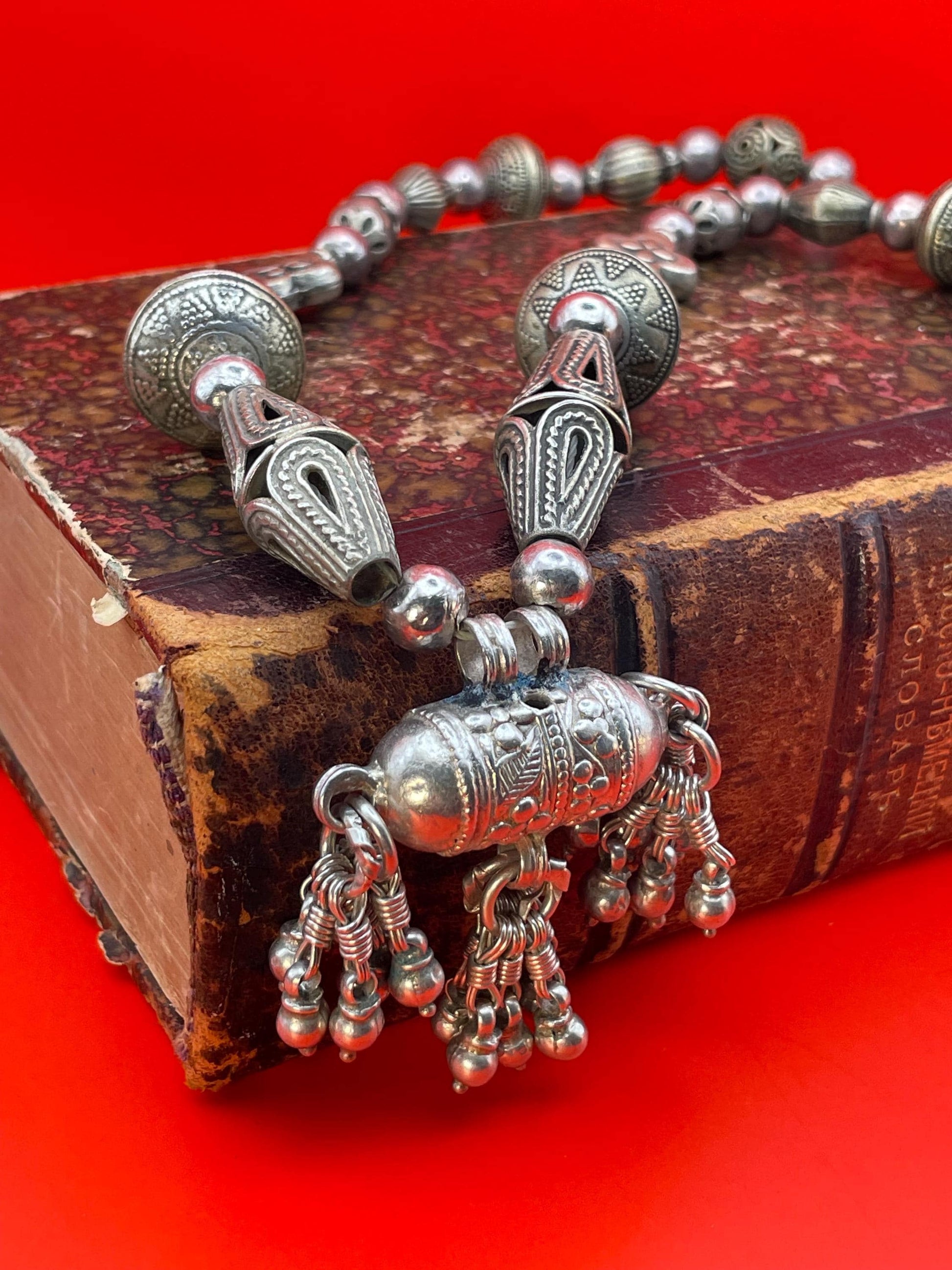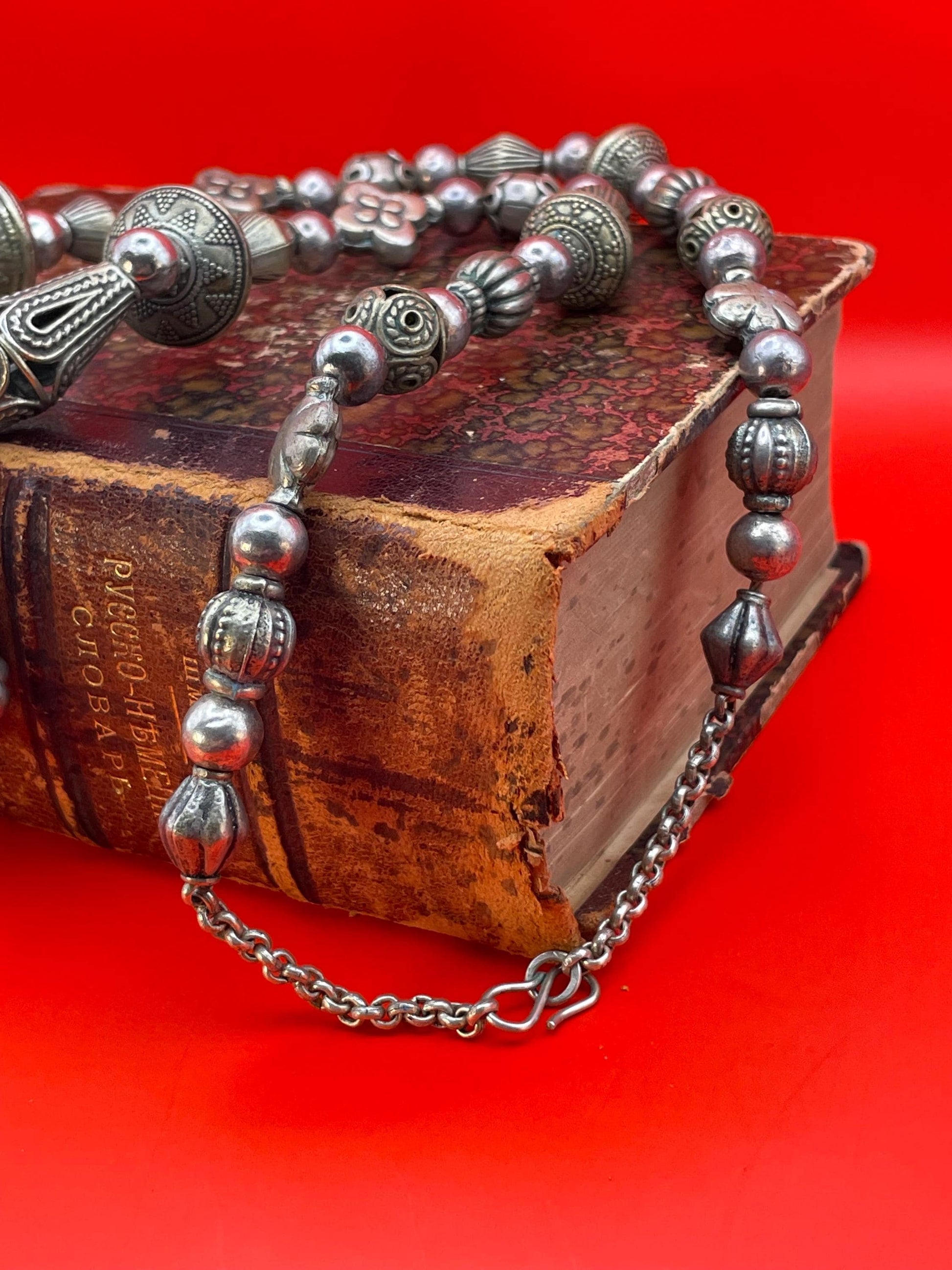 Untested Silver Persian Necklace with intricate beads and 2inch pendant