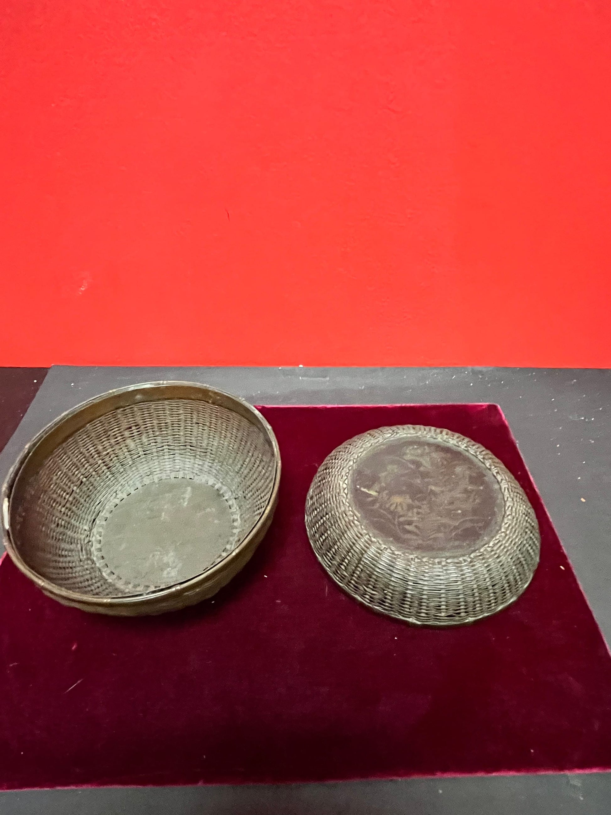 Unusual 19 century Japanese wicker and bronze box lid fits exactly great Patina