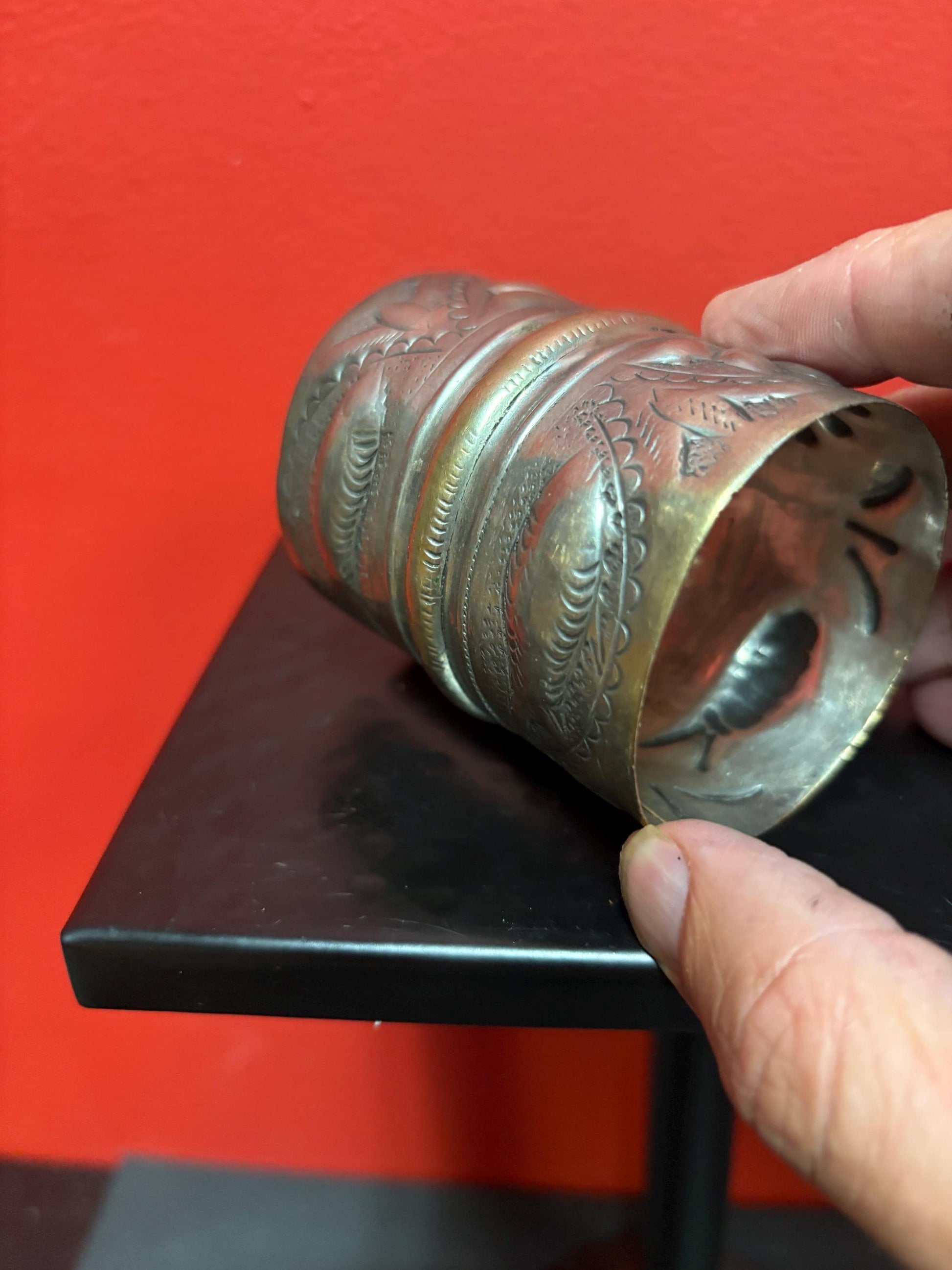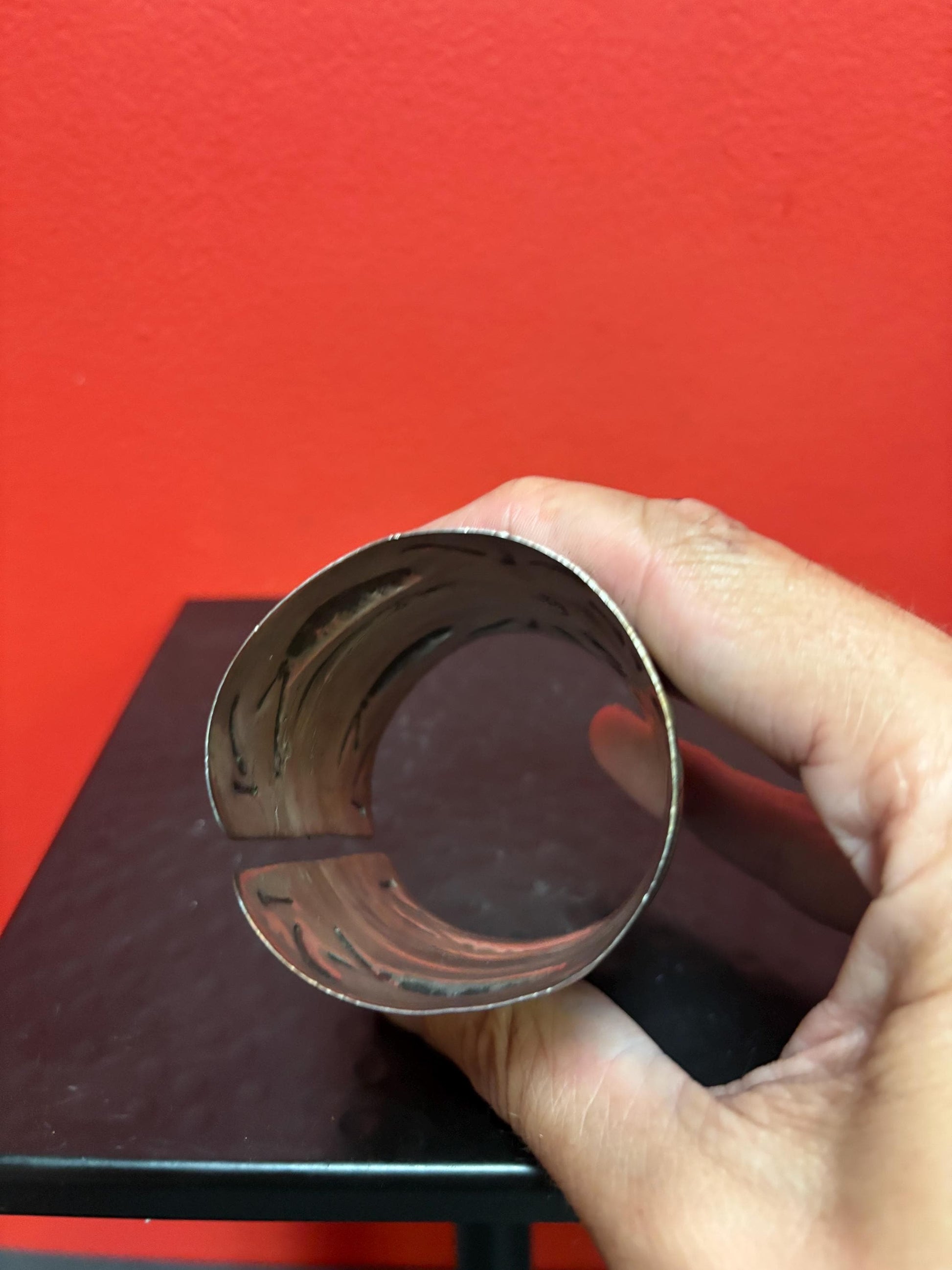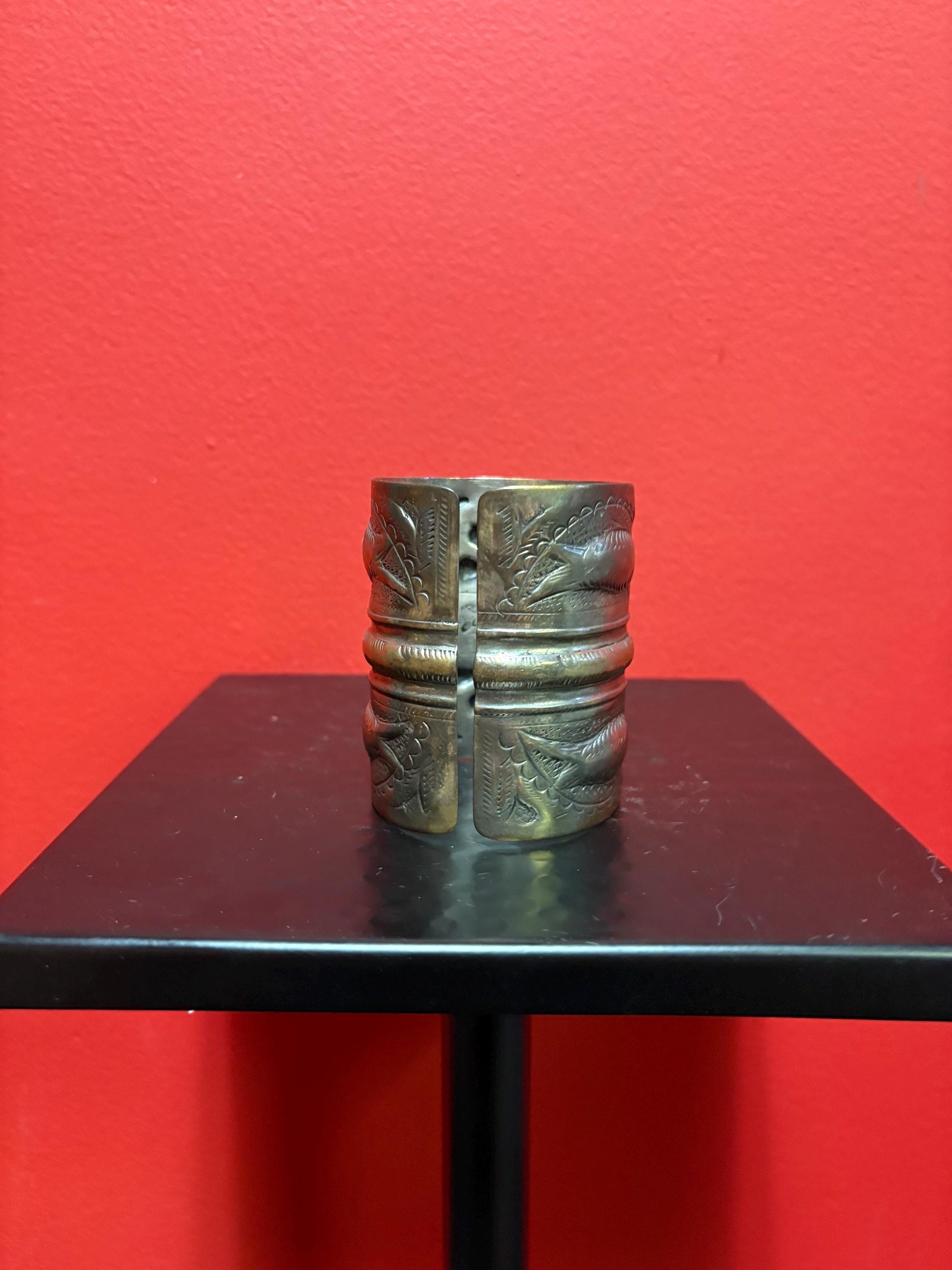 Unusual 3 x 2 1/2” wide massive antique silver plated and brass Cuff— cool imagery and perfect gift — unisex