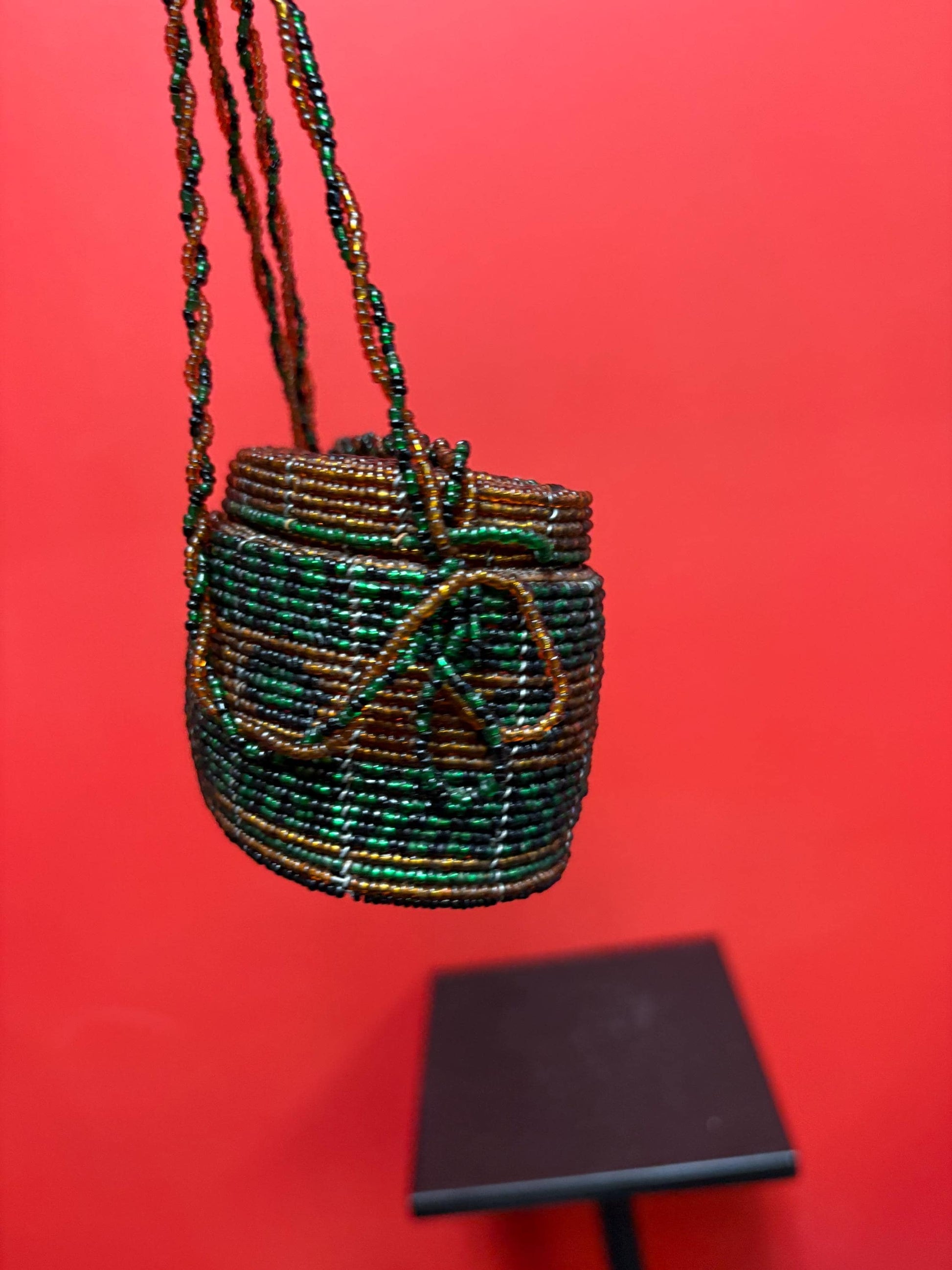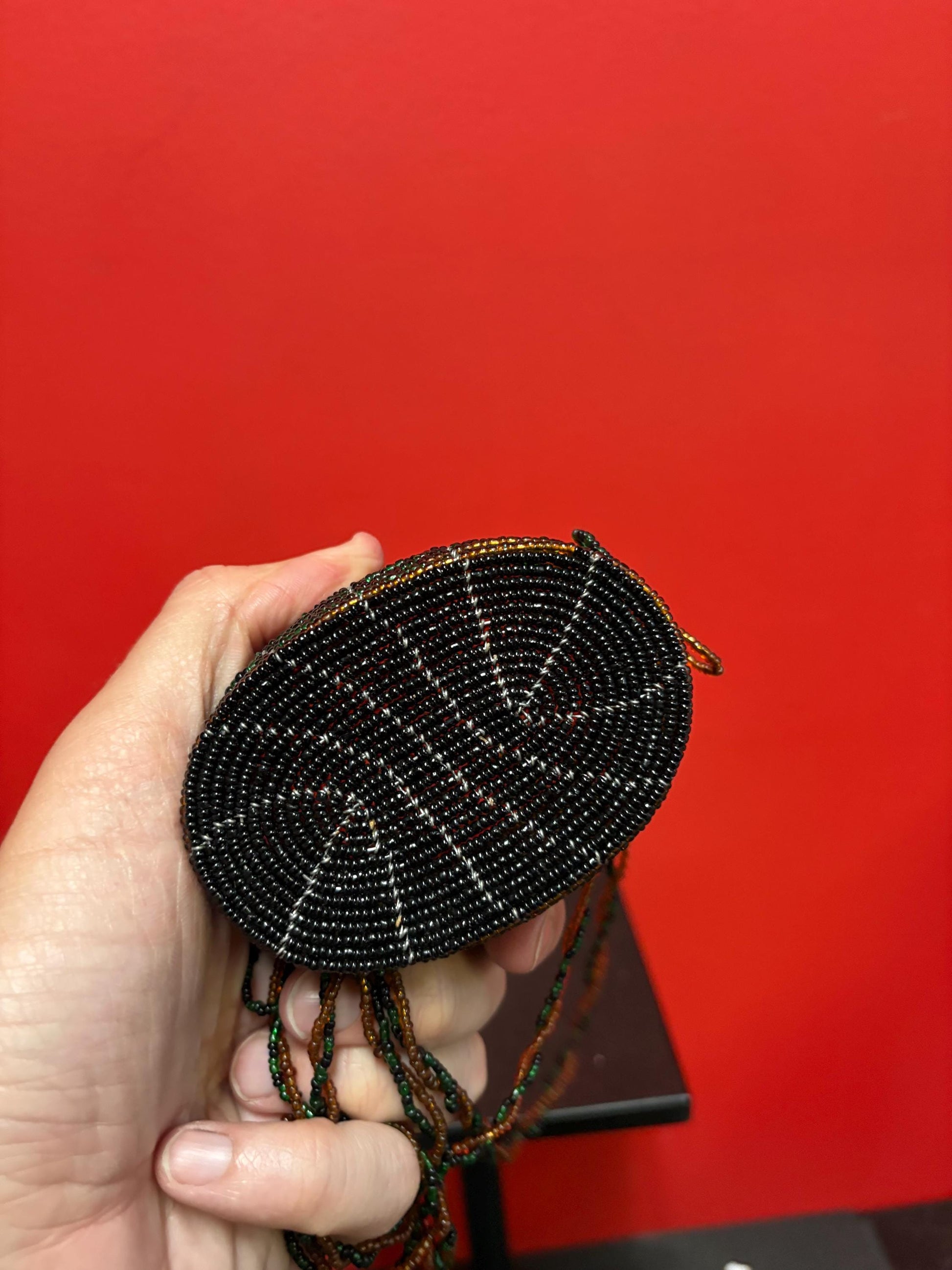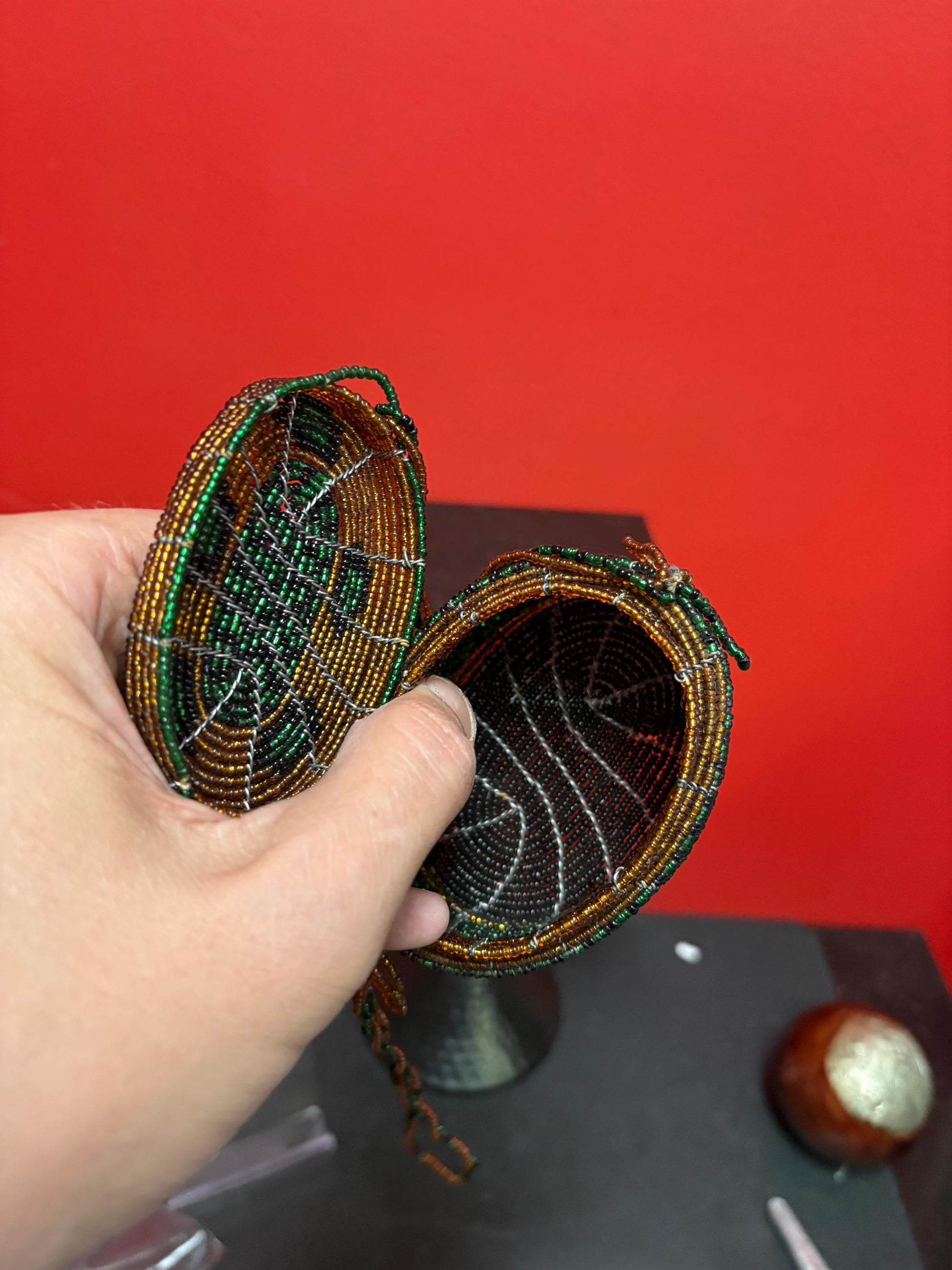 Unusual indigenous first nations 3 1/2 x 3 high beaded basket in great condition wonderful detail great gift or for collection
