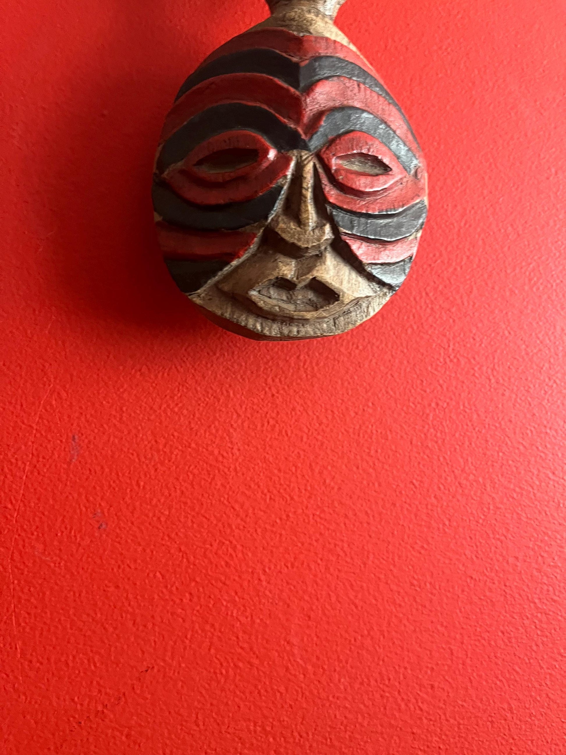 Very cool 11 inch tall vintage hand carved and painted African mask great imagery