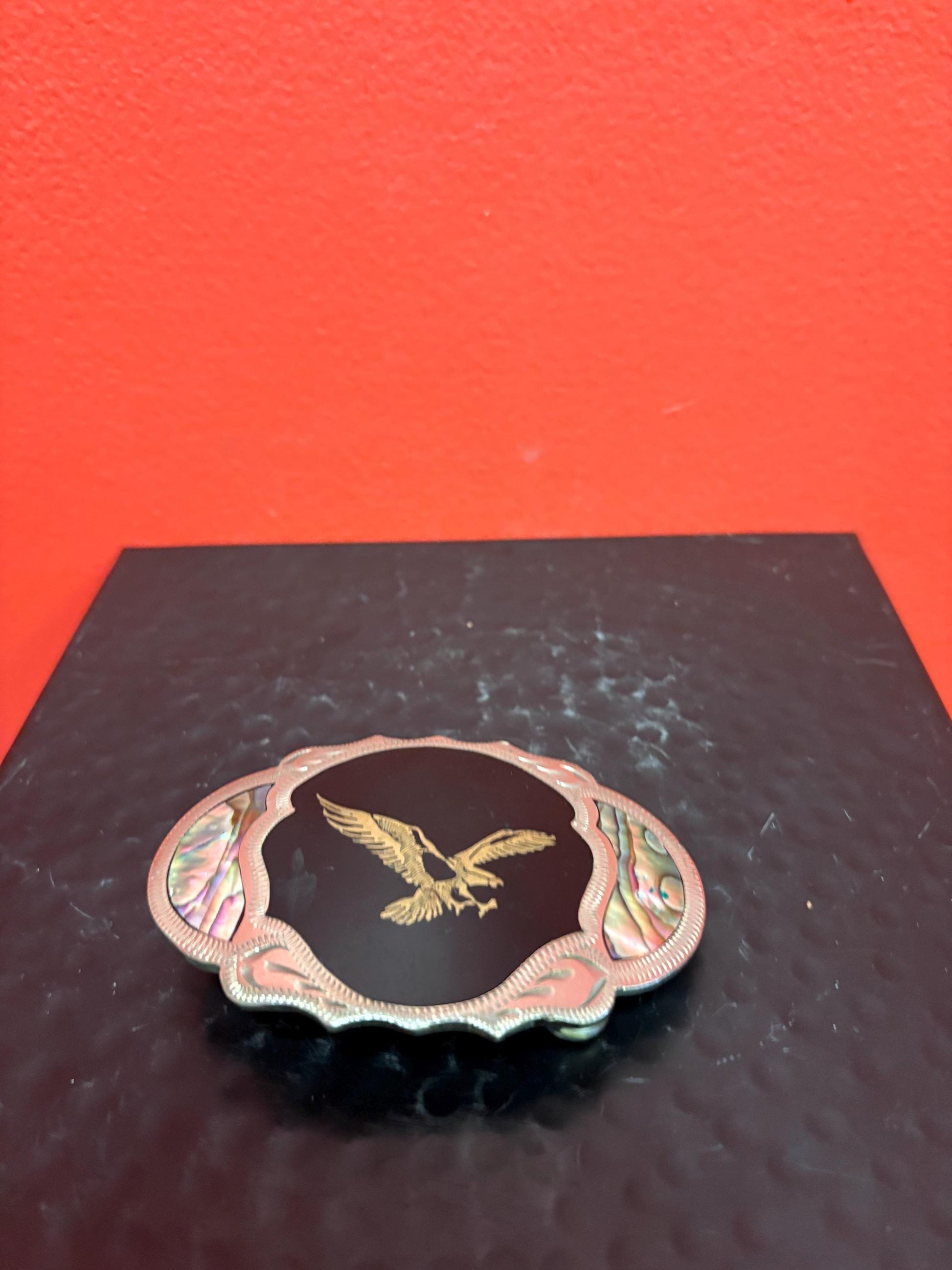 Very cool 3 1/2 inch untested silver and abalone belt buckle with an eagle American beauty