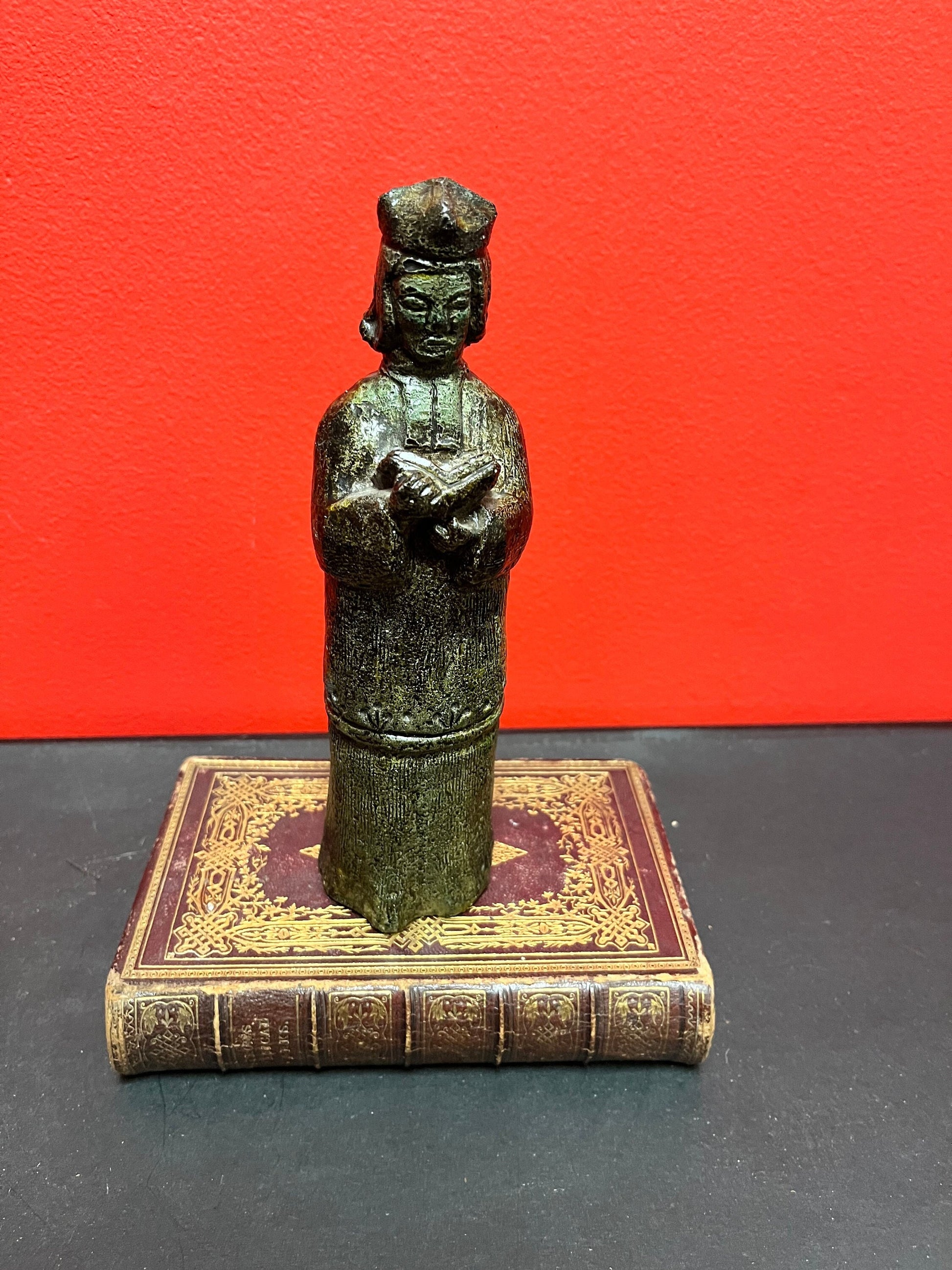 Very cool 8 inch European stone statue of a priest unique in good condition