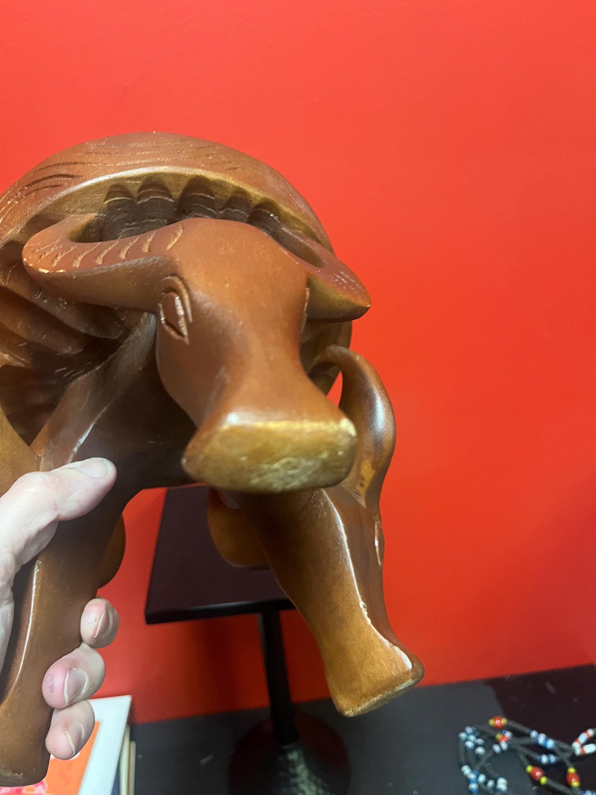 Very cool African 8 x 8 stool with legs the shape of yaks great conversation piece and great value