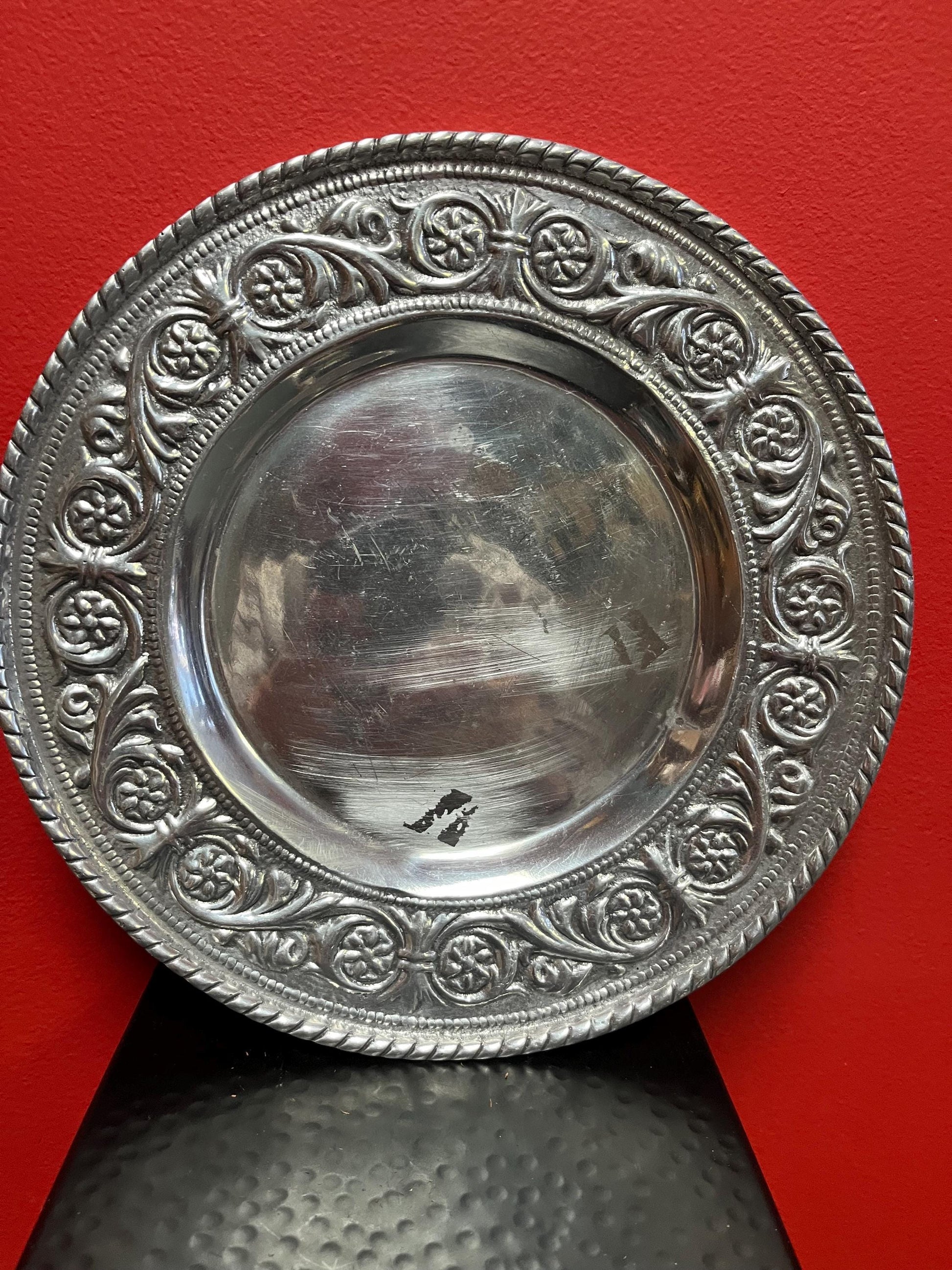Very heavy beautiful 11 inch wide English silver plated charger plate great decoration - couple marks good value