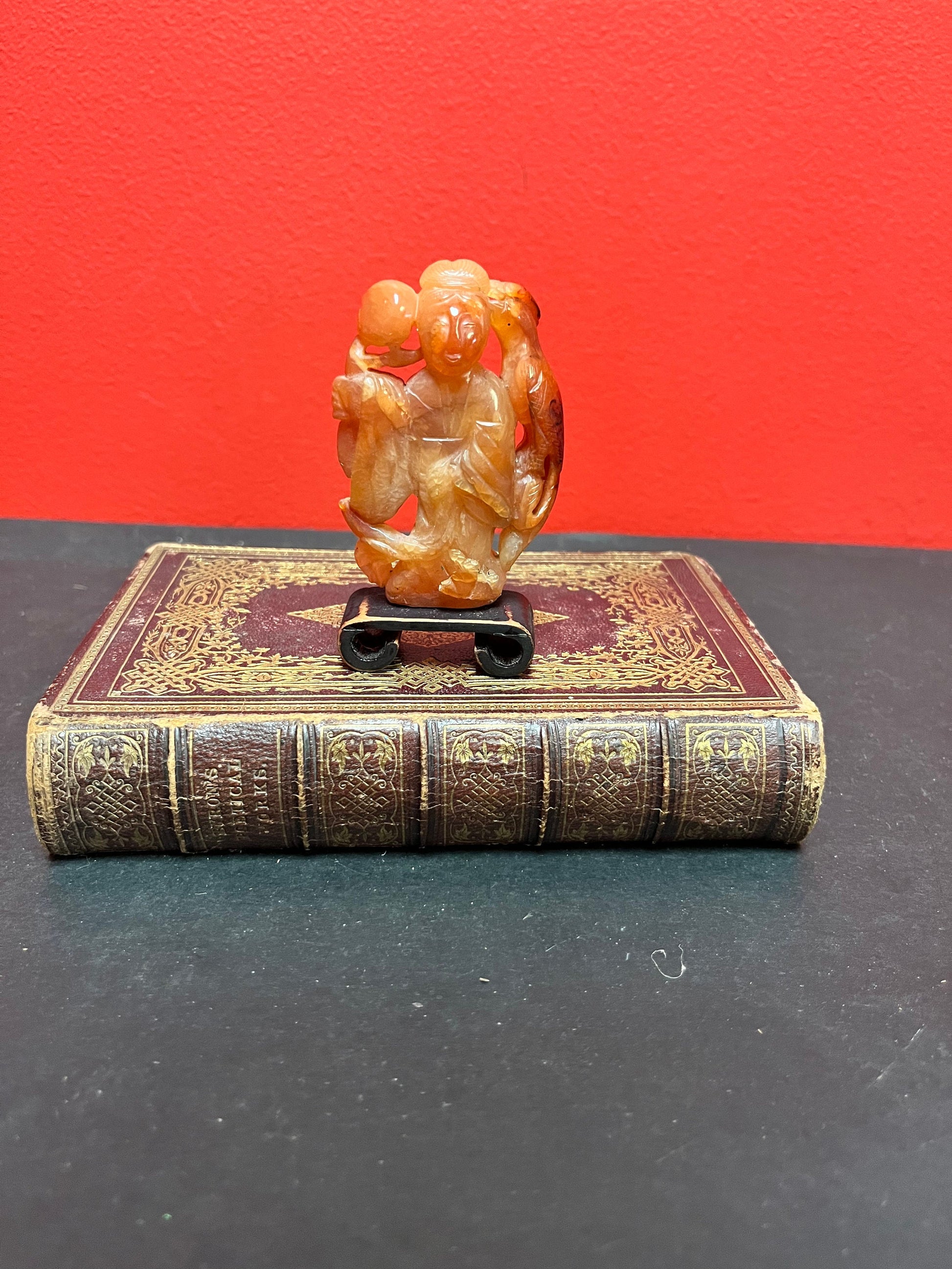 Very rare 3 inch high Chinese red jade beauty on stand - wow