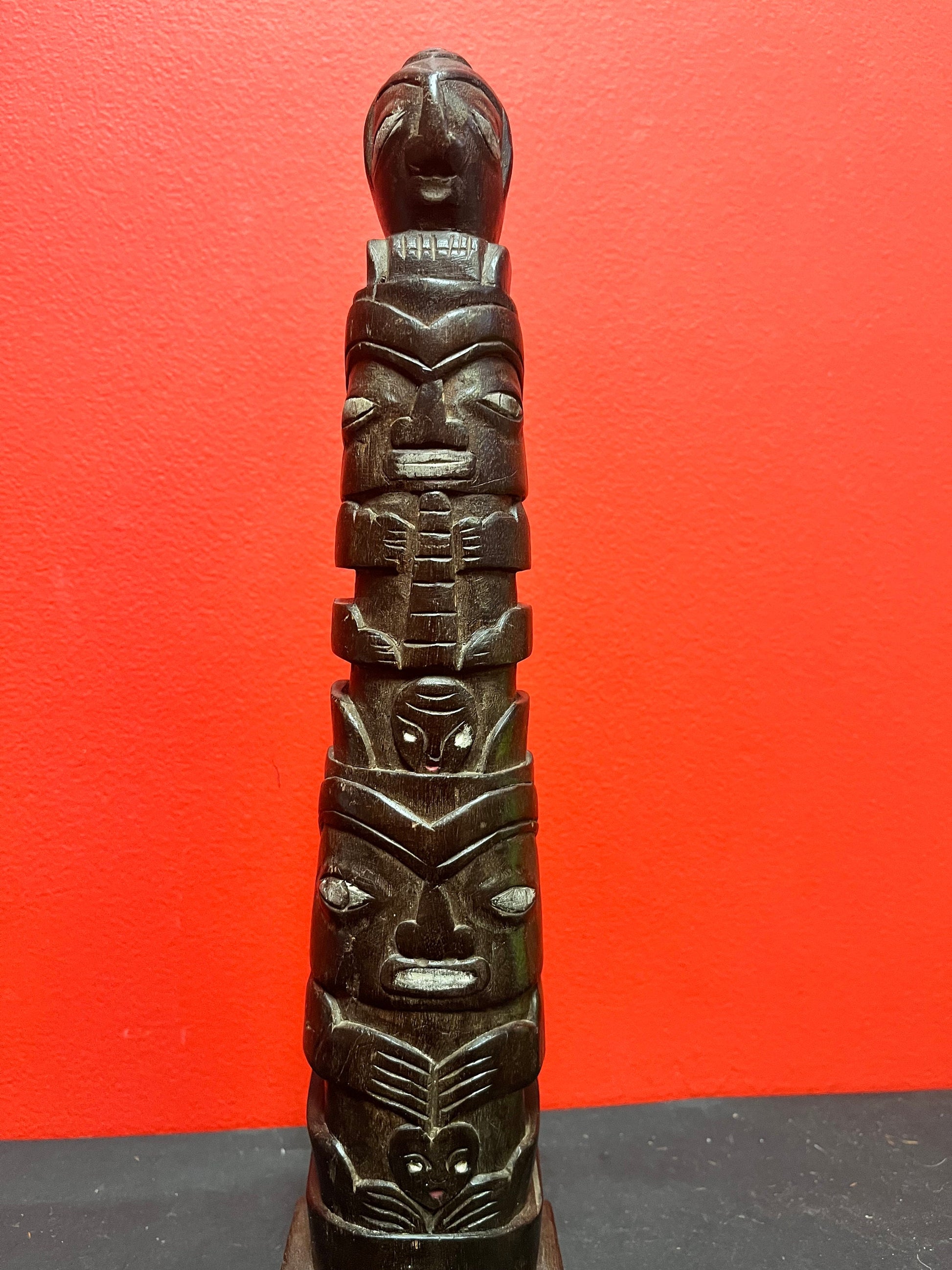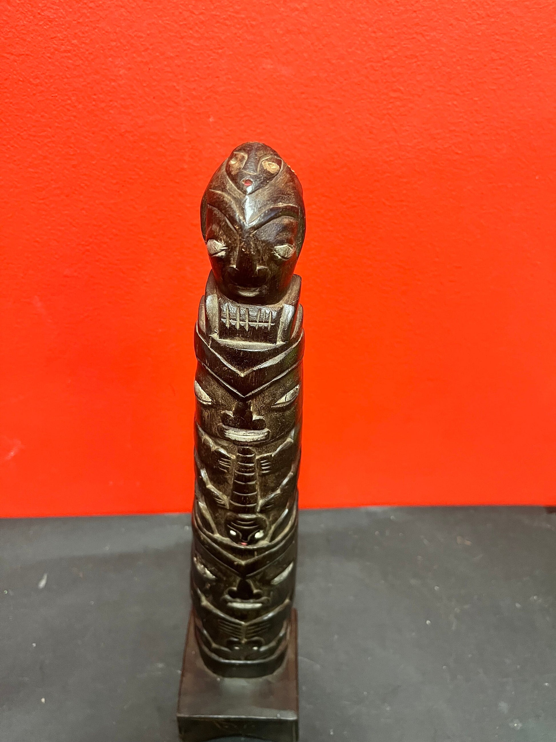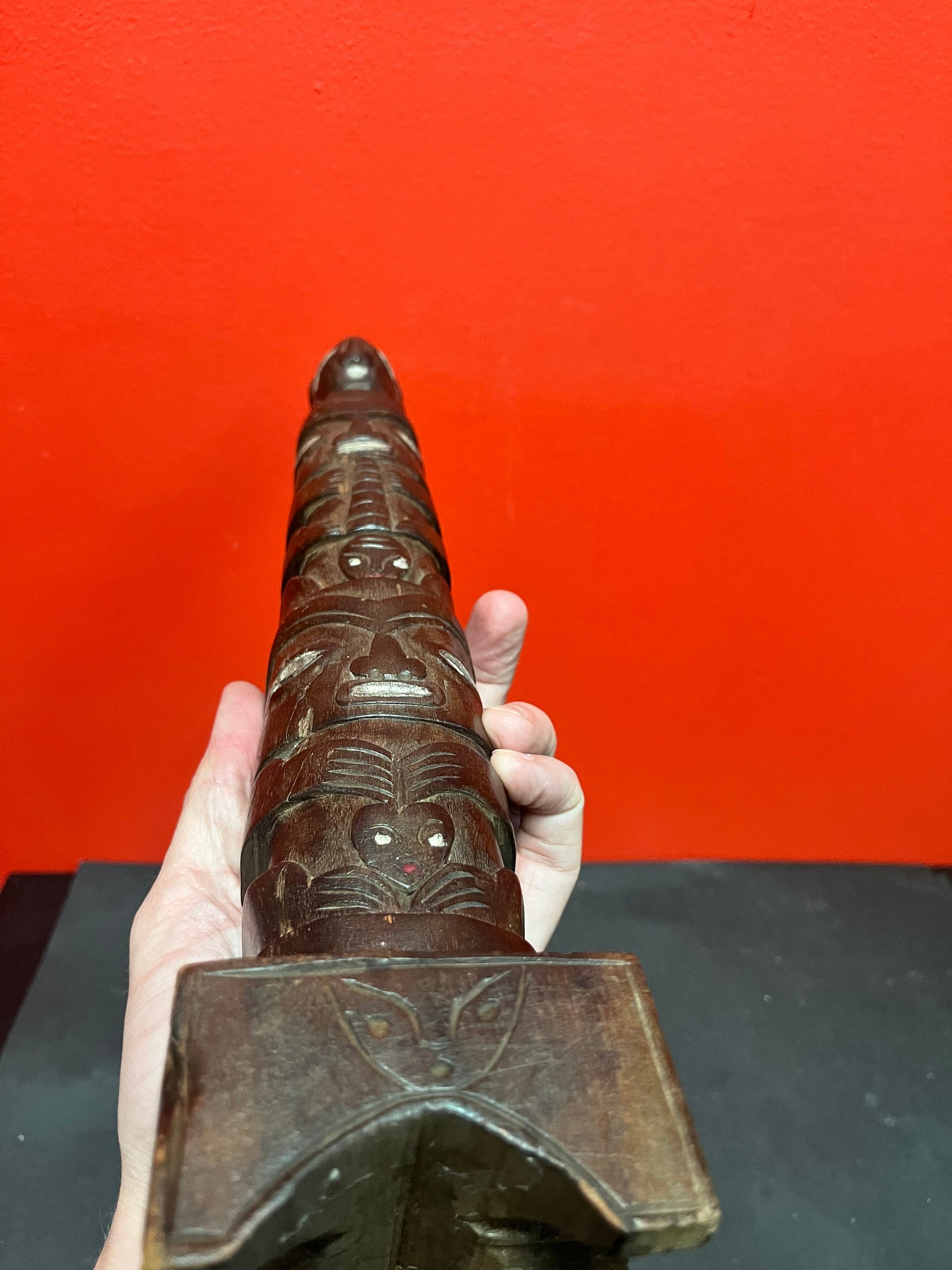 Very rare antique 14 inch tall indigenous first nations, Pacific Northwest Coast transformation totem pole found mid Vancouver Island!
