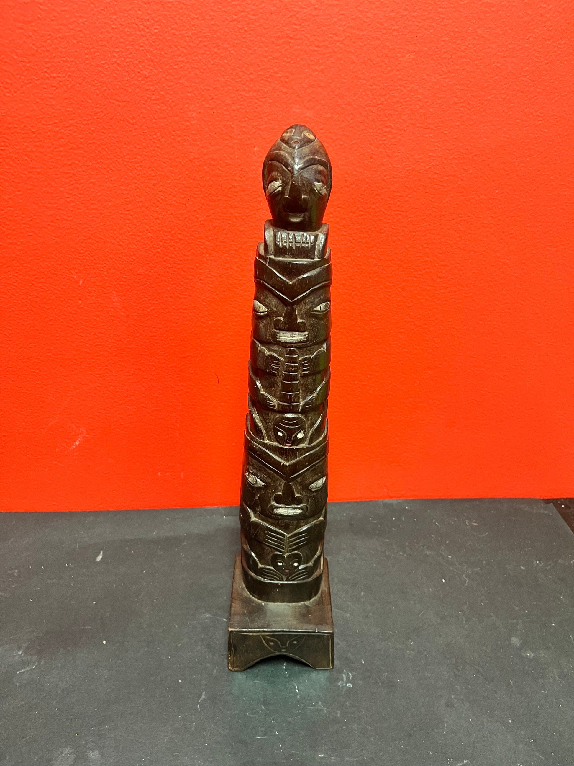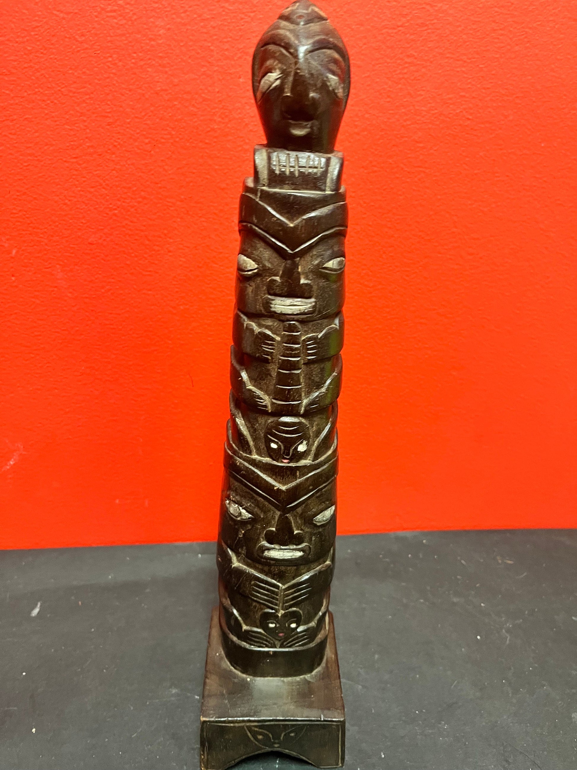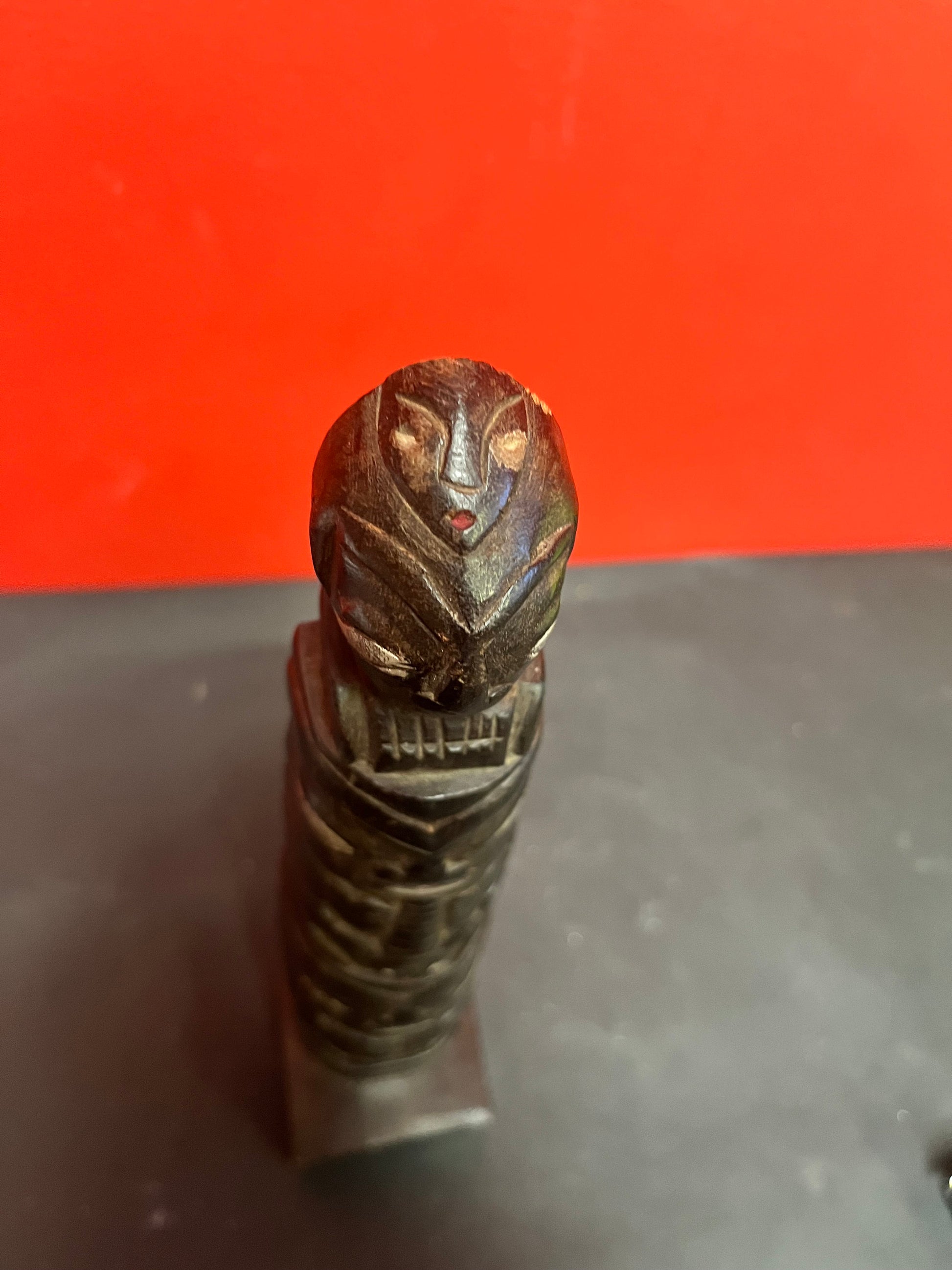 Very rare antique 14 inch tall indigenous first nations, Pacific Northwest Coast transformation totem pole found mid Vancouver Island!