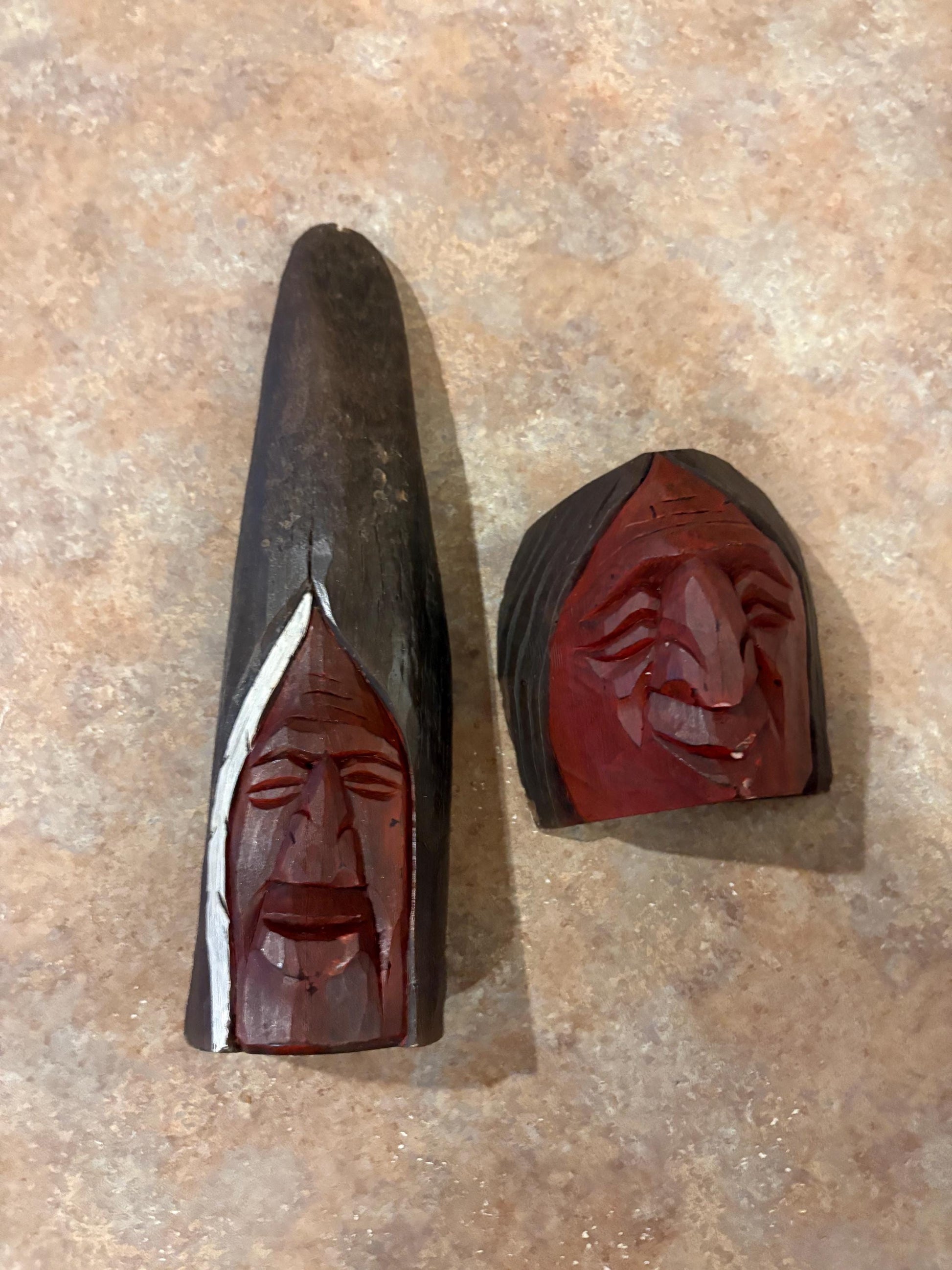 Very unusual Canadian vintage indigenous First Nations candles — 13 and 5 inches tall — good condition