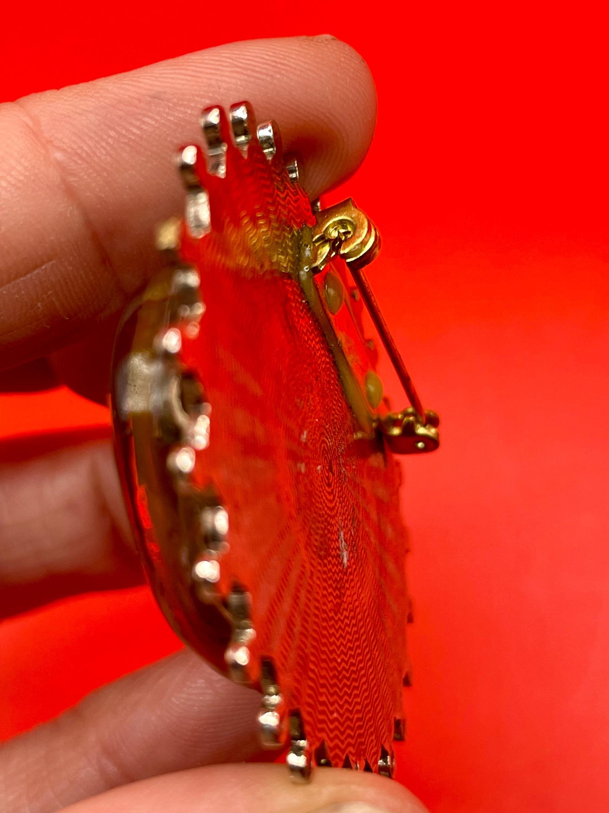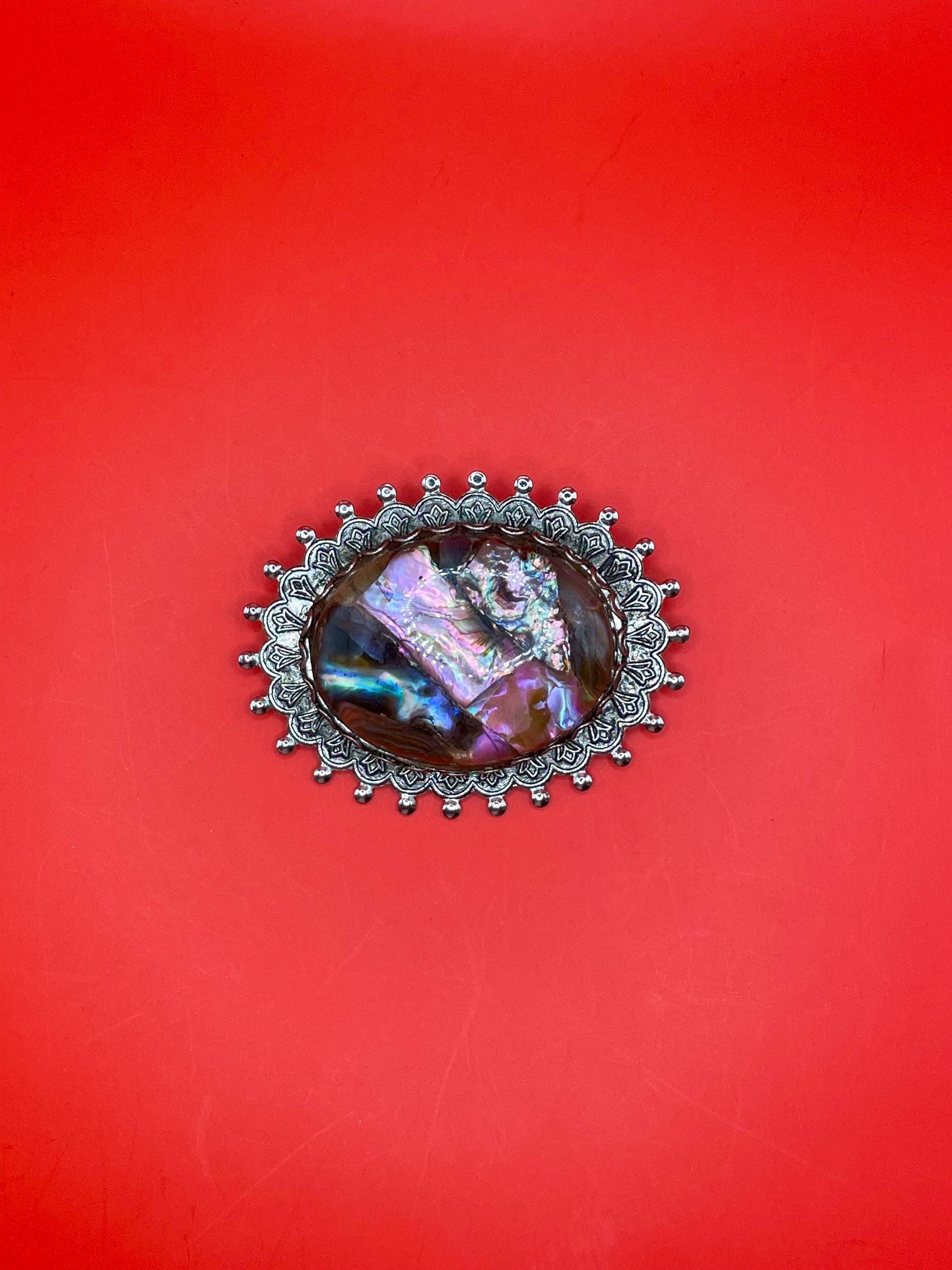 Lovely Vintage brooch with a dazzling abalone center. Amazing colours!