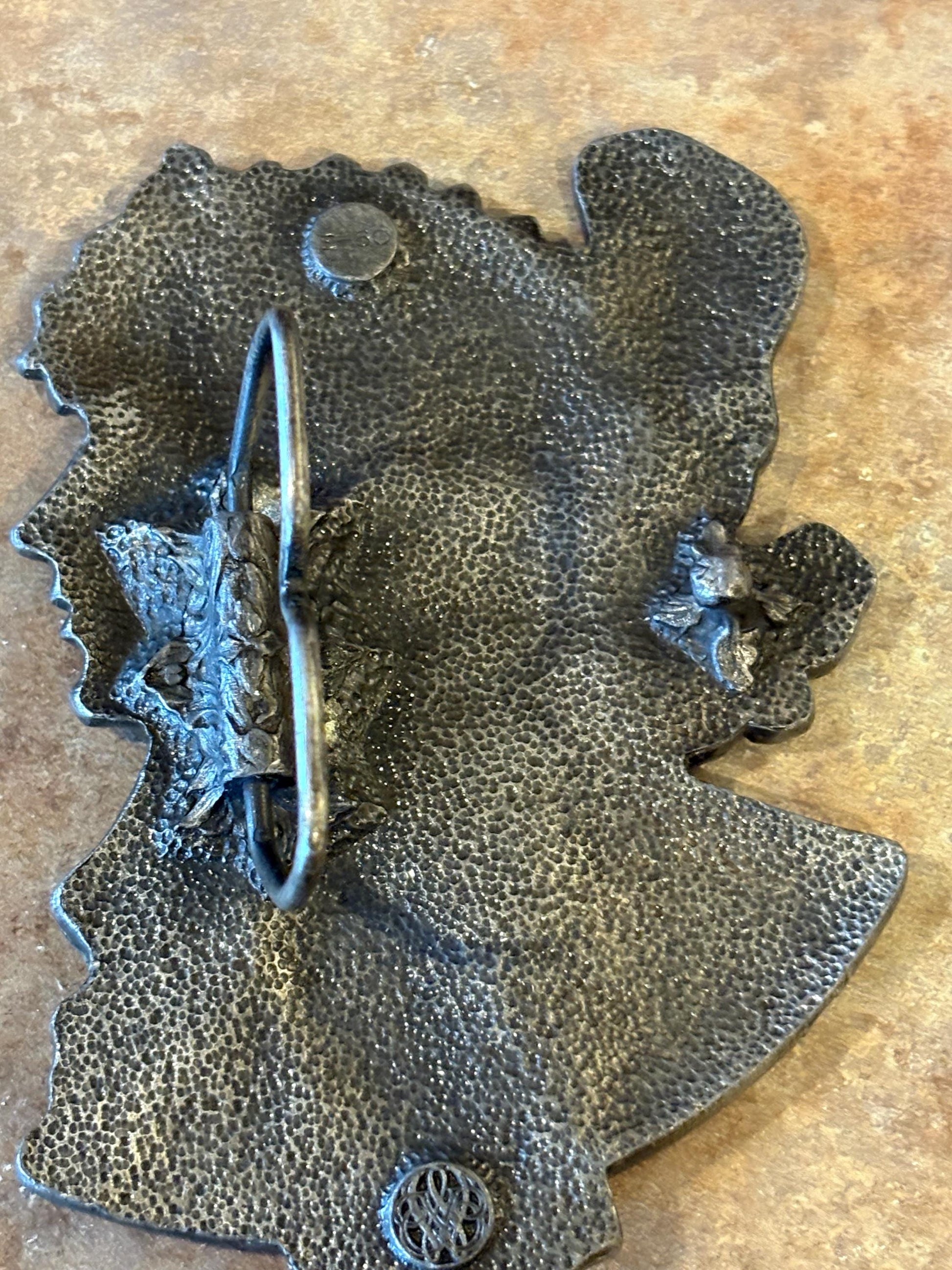 Vintage Art Nouveau Gypsy Woman Alphonse Mucha metal Belt Buckle - 5 inch - 1970’s