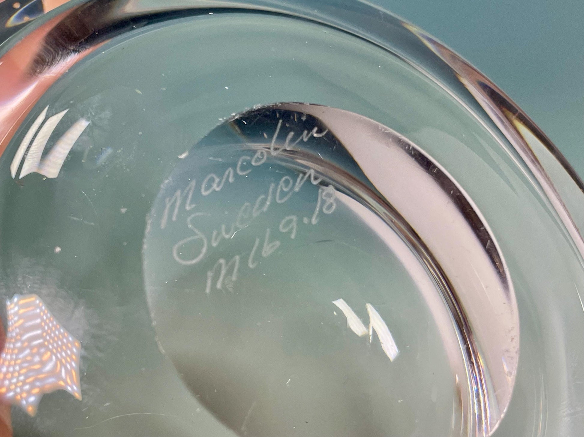 Stunning vintage “Marcolin” glass shell dish. Heavy and solid. Made in Sweden. What a beauty!