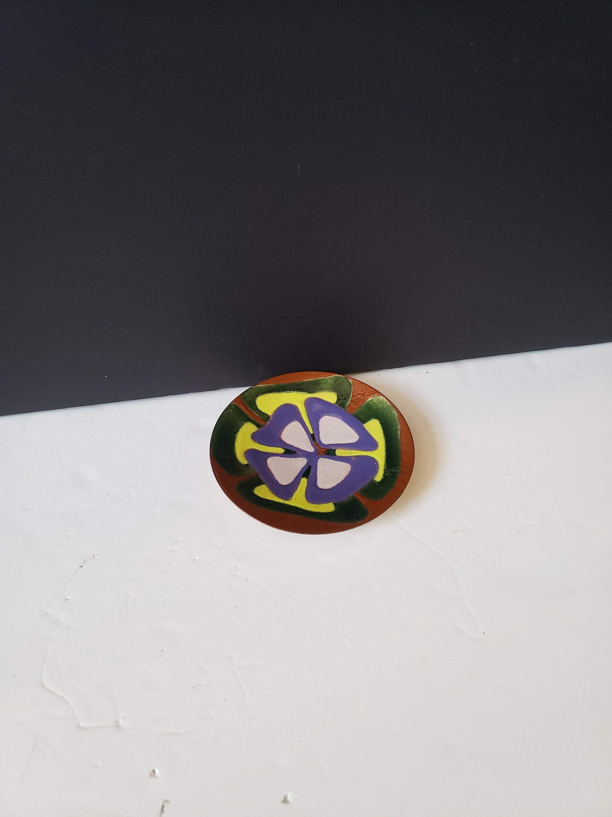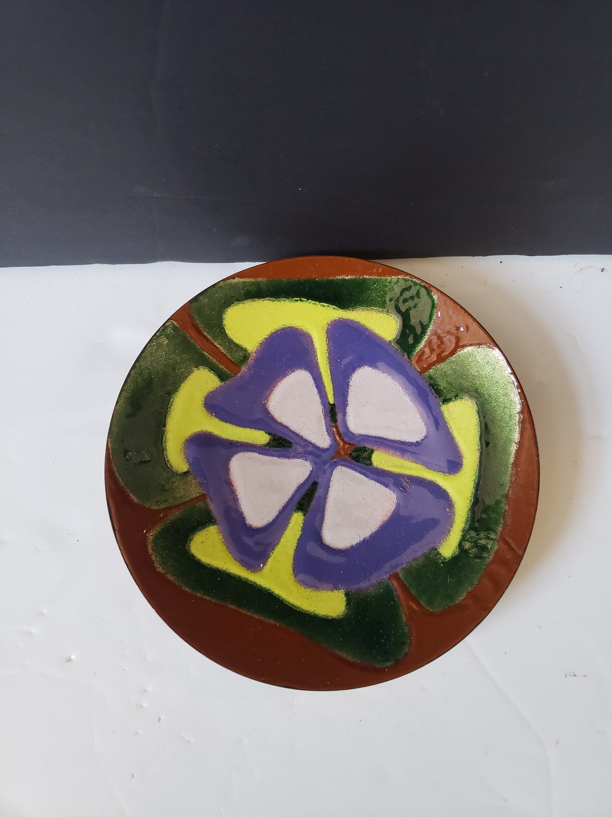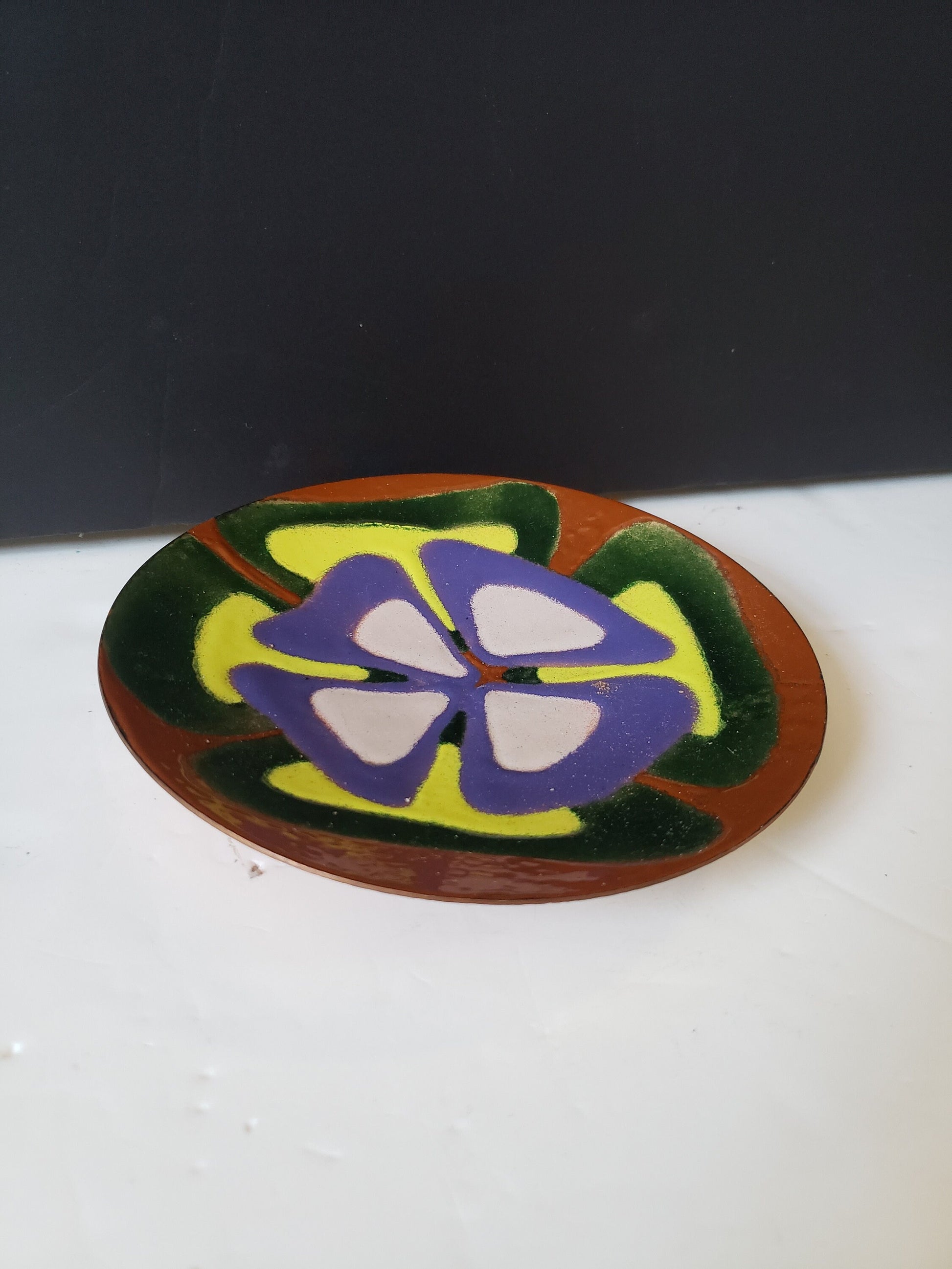 Vintage Signed Acid Etched Copper Dish