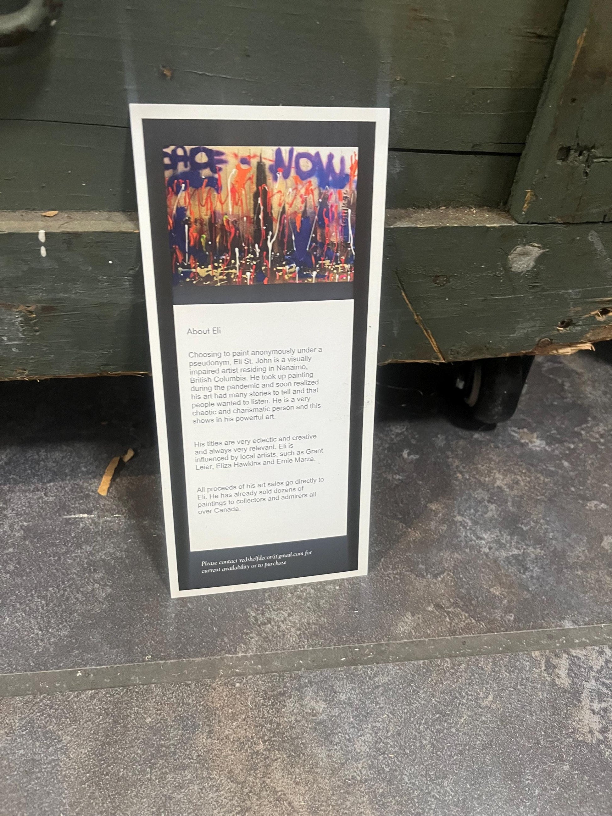 Visually impaired original artist Eli St. John Vancouver Island artist 5 x 7 crow painting in Pine frame wow