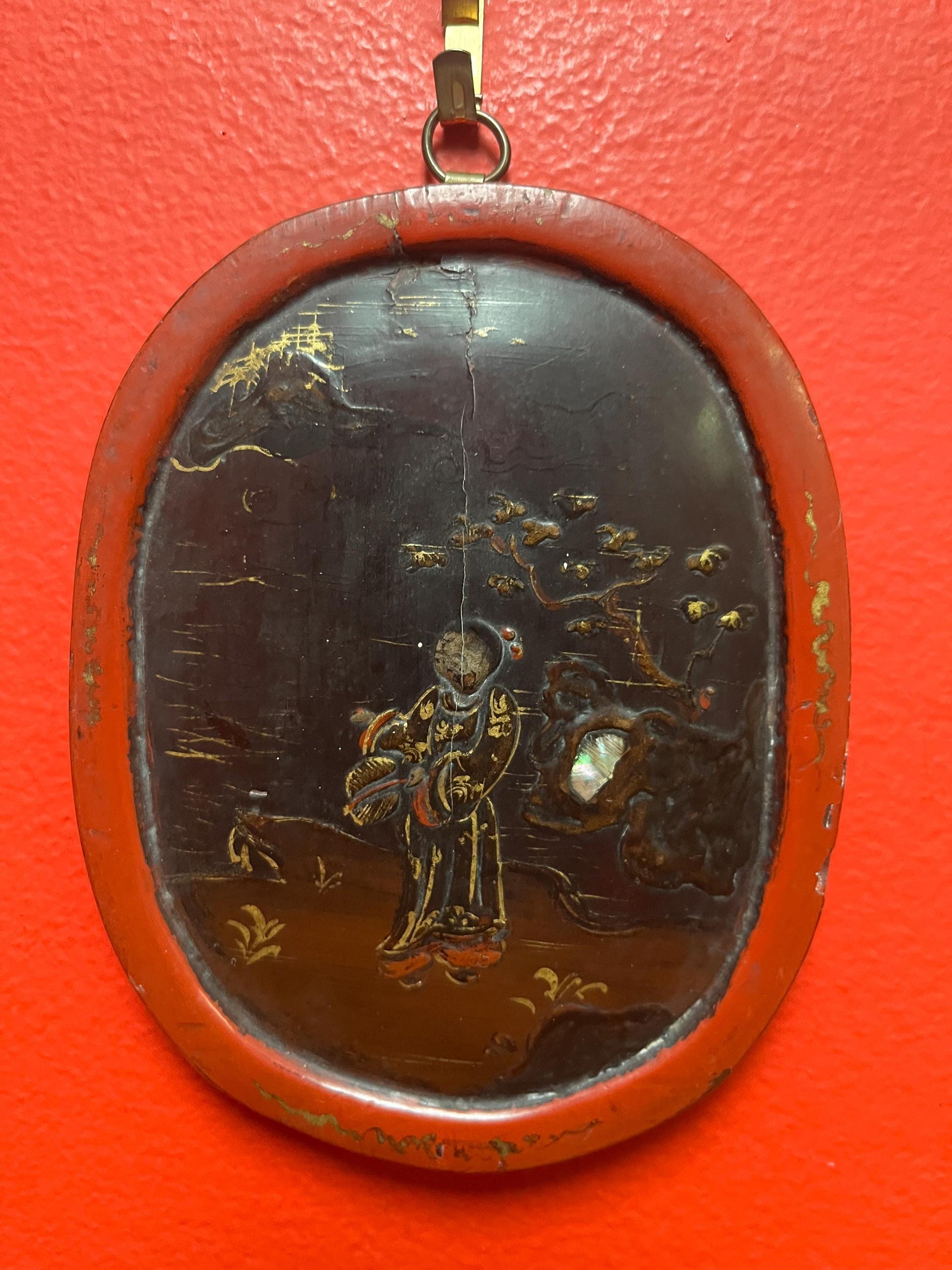 Wonderful 5 x 4 Chinese lacquer framed picture with abalone shell wonderful detail and great gift ready to hang