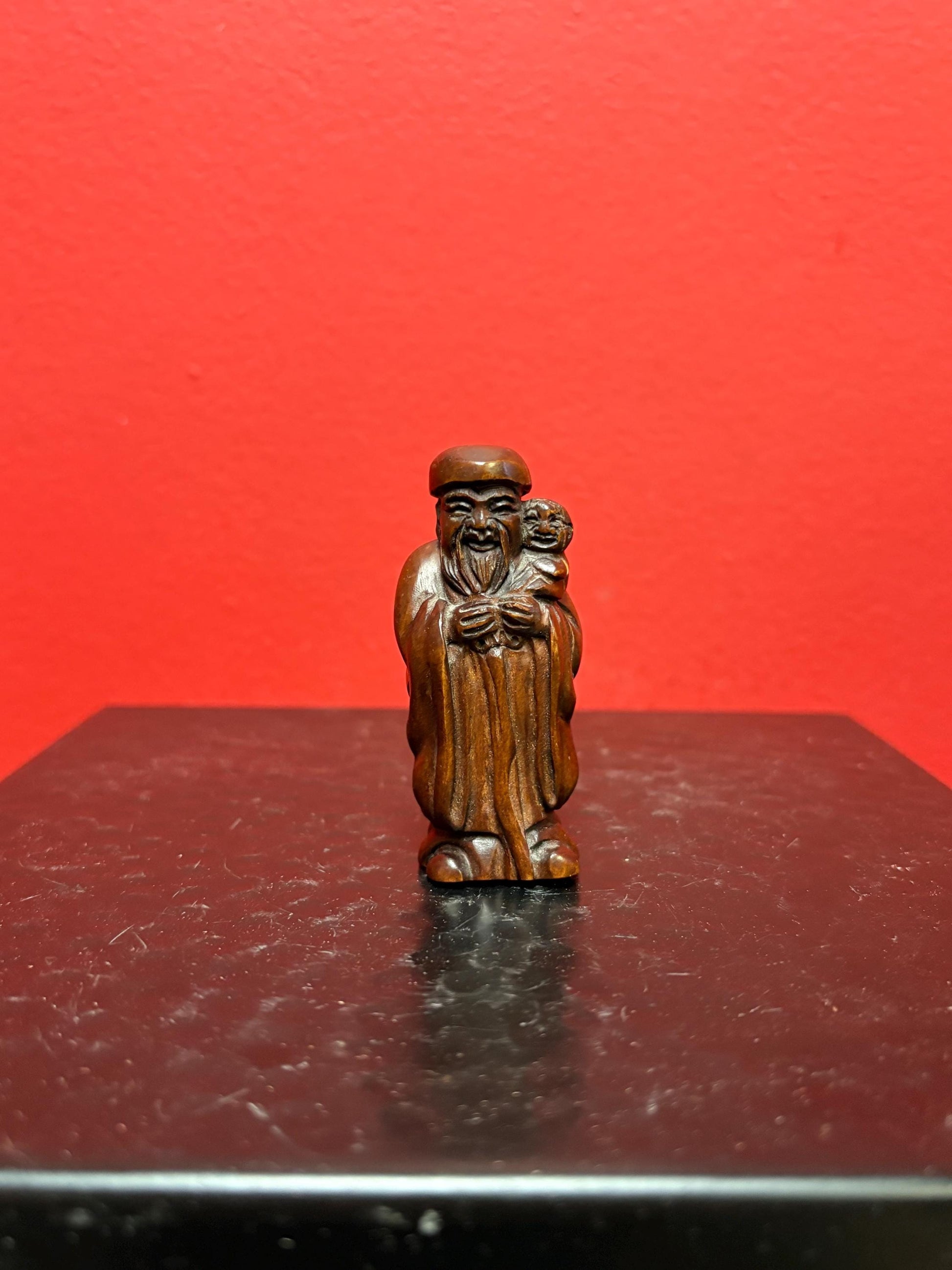 Wonderful antique Japanese WOODEN netsuke — 3 inches tall — amazing detail — good value