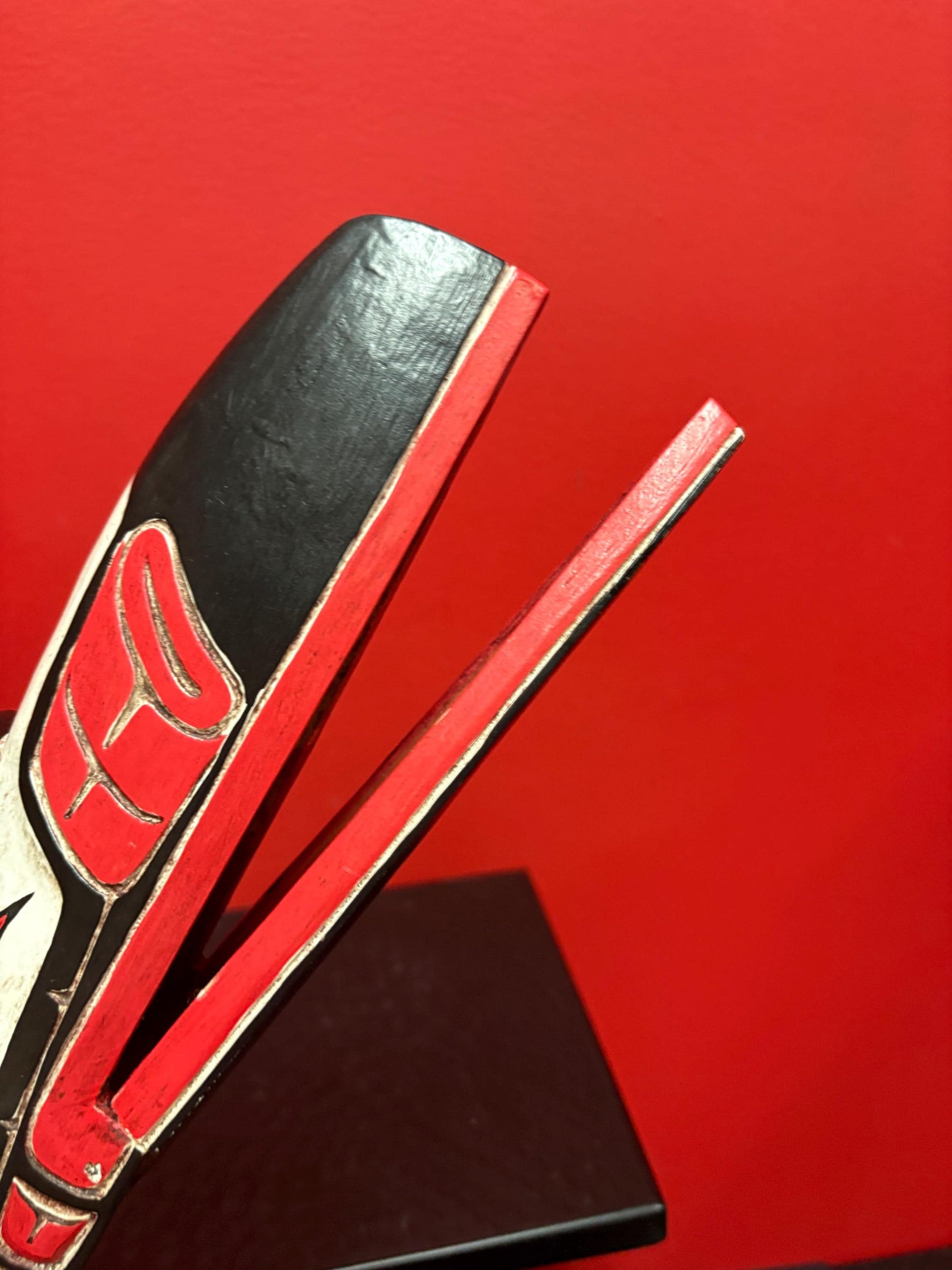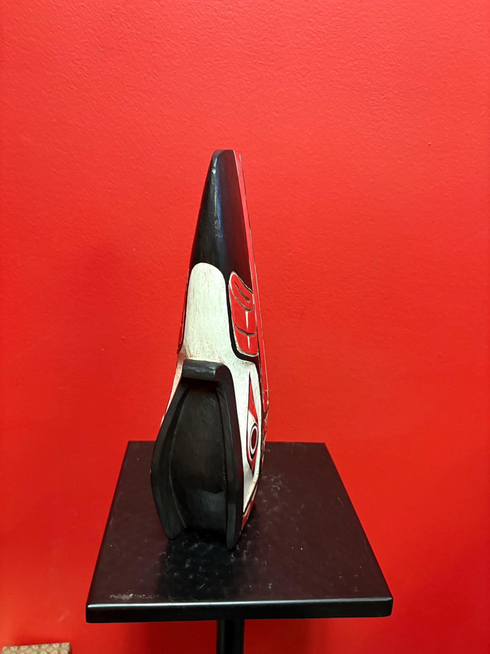 Wonderful indigenous first nation pacific north West Coast 11 x 3 1/2 high clapper mask by Artie george amazing quality and detail - wow