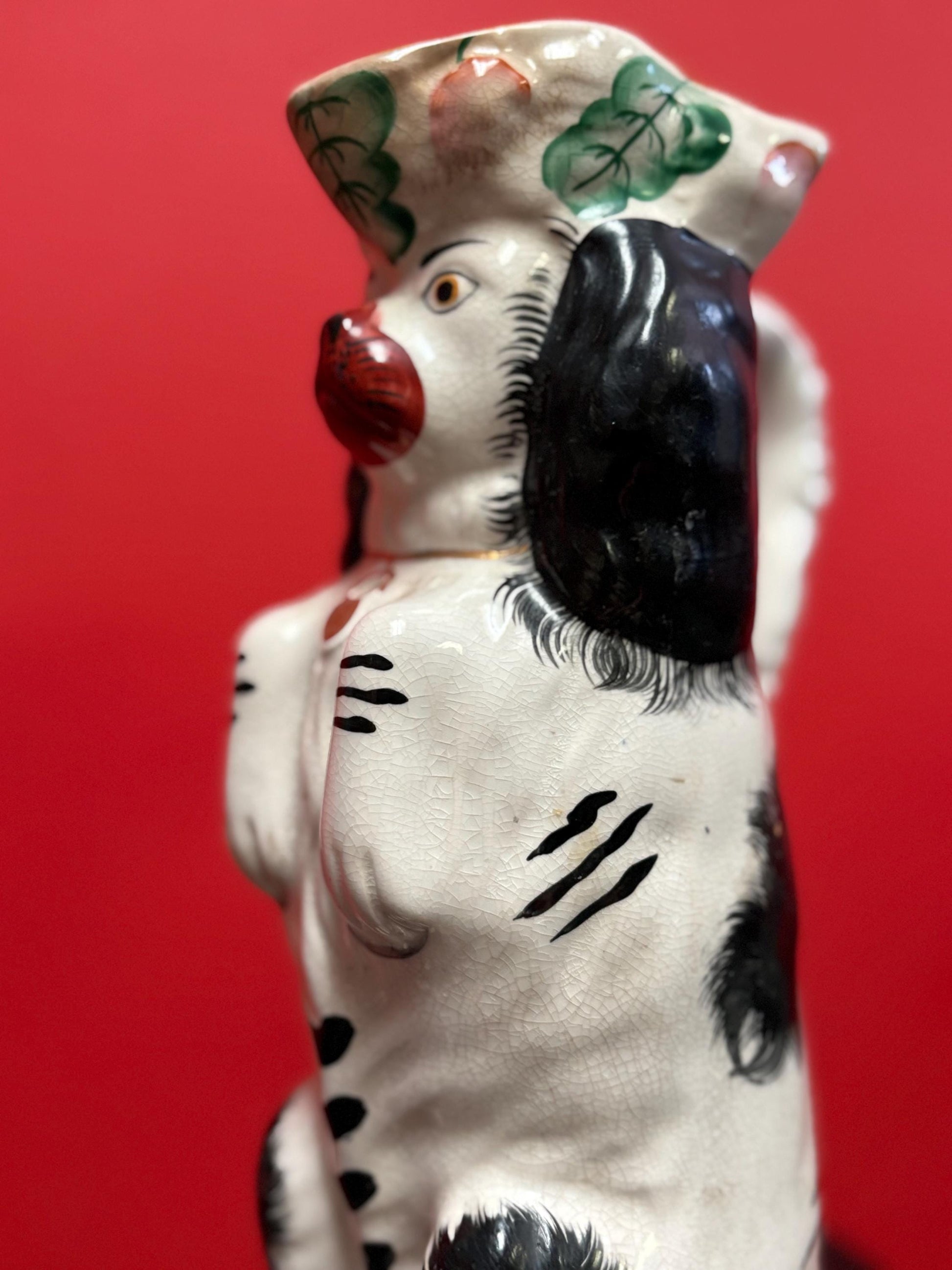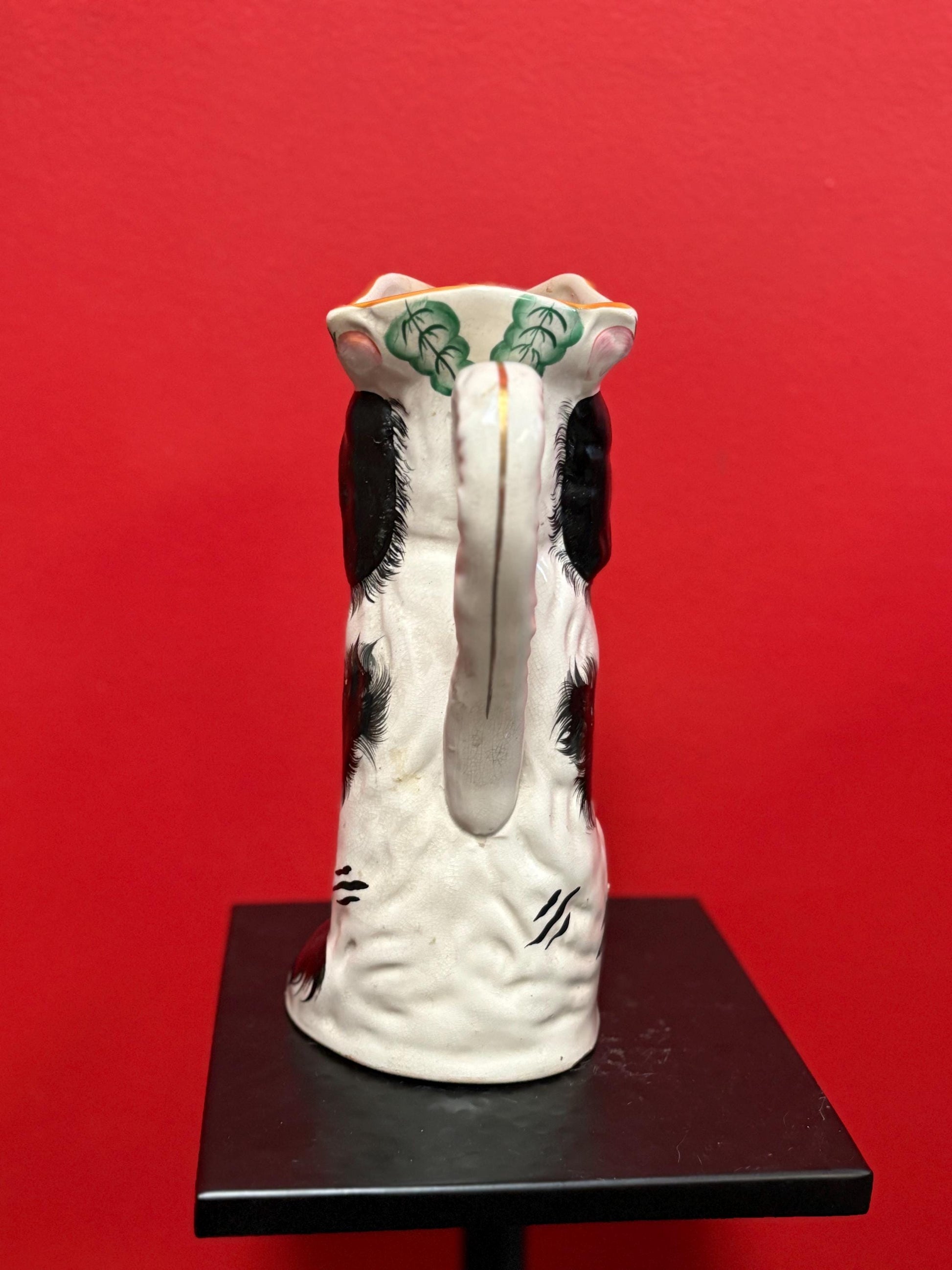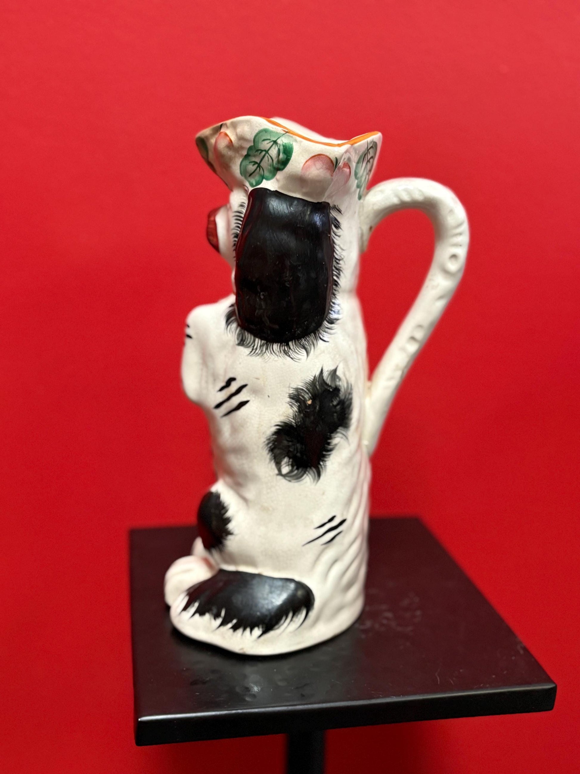 Wonderful Staffordshire rare 9.75 inch tall King Charles spaniel jug — 1850s to 1870s — perfect condition — wow